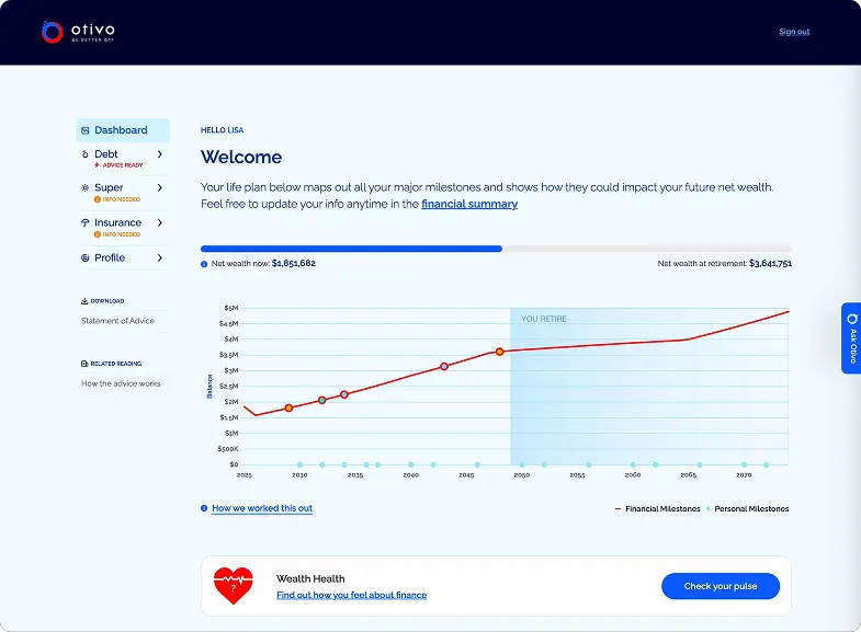 * The $4.3 billion figure reflects the cumulative projected uplift in net wealth across all Otivo users since 2015, based on user-provided data and assuming recommended strategies are followed through to completion.